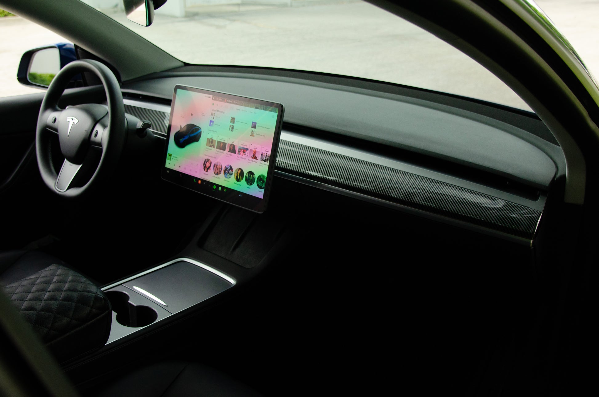 - Premium Aesthetic: The glossy carbon fiber print enhances the interior with a refined, sporty edge that complements Tesla’s modern design.
