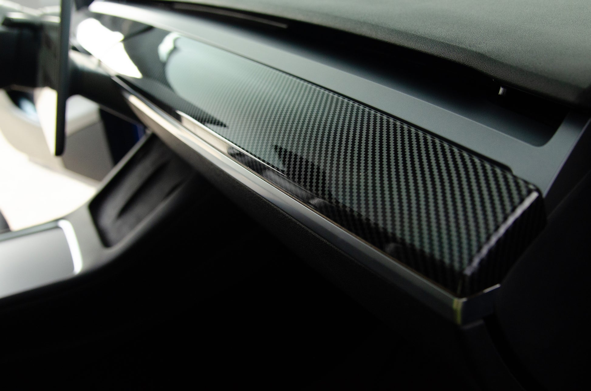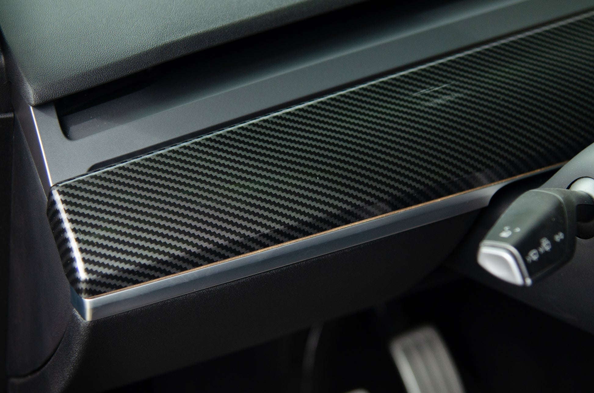 Upgrade Your Tesla Interior with the Glossy Carbon Fiber Dashboard Cover (2 pcs)