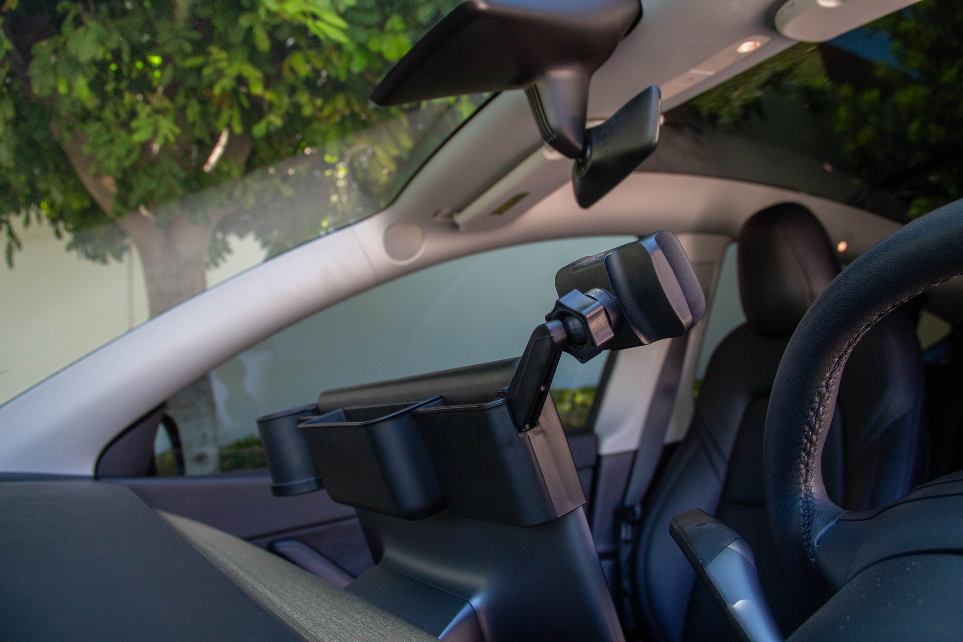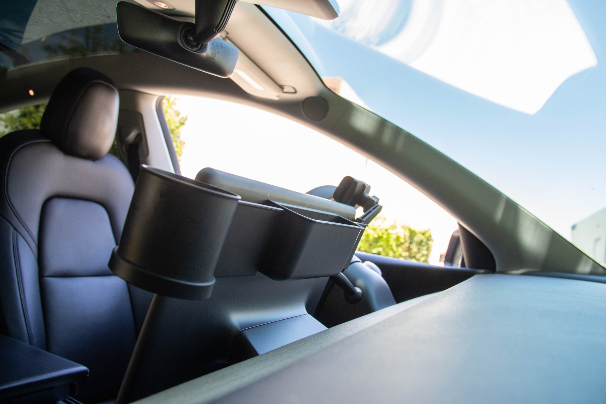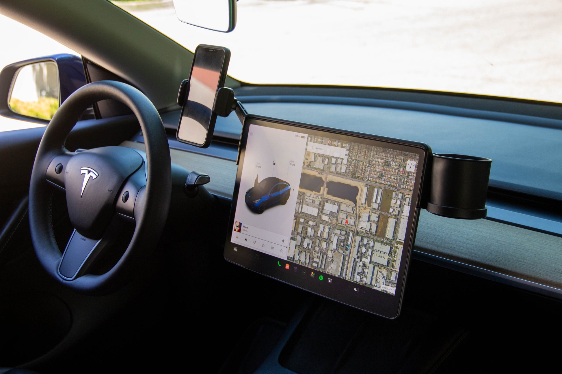 Tesla Model 3 & Y Monitor Phone Mount and Sunglasses Case – Secure Phone Holder and Cup Holder Accessory for a Convenient Driving Experience