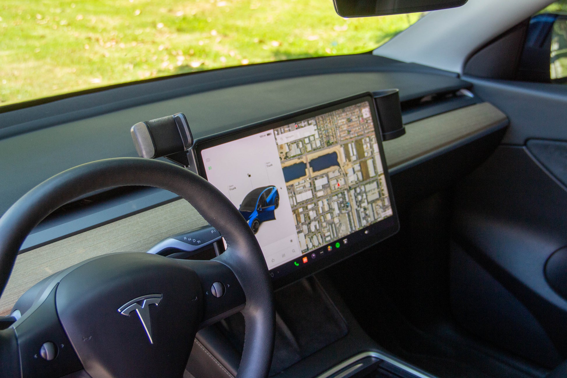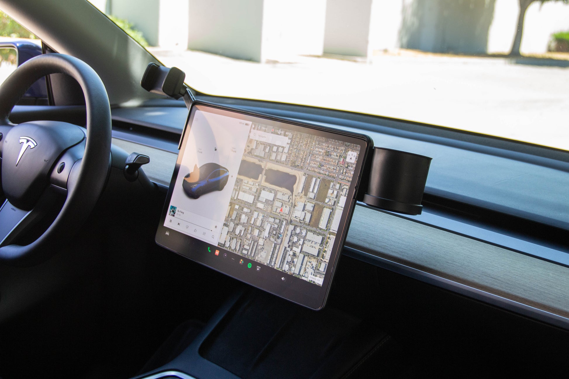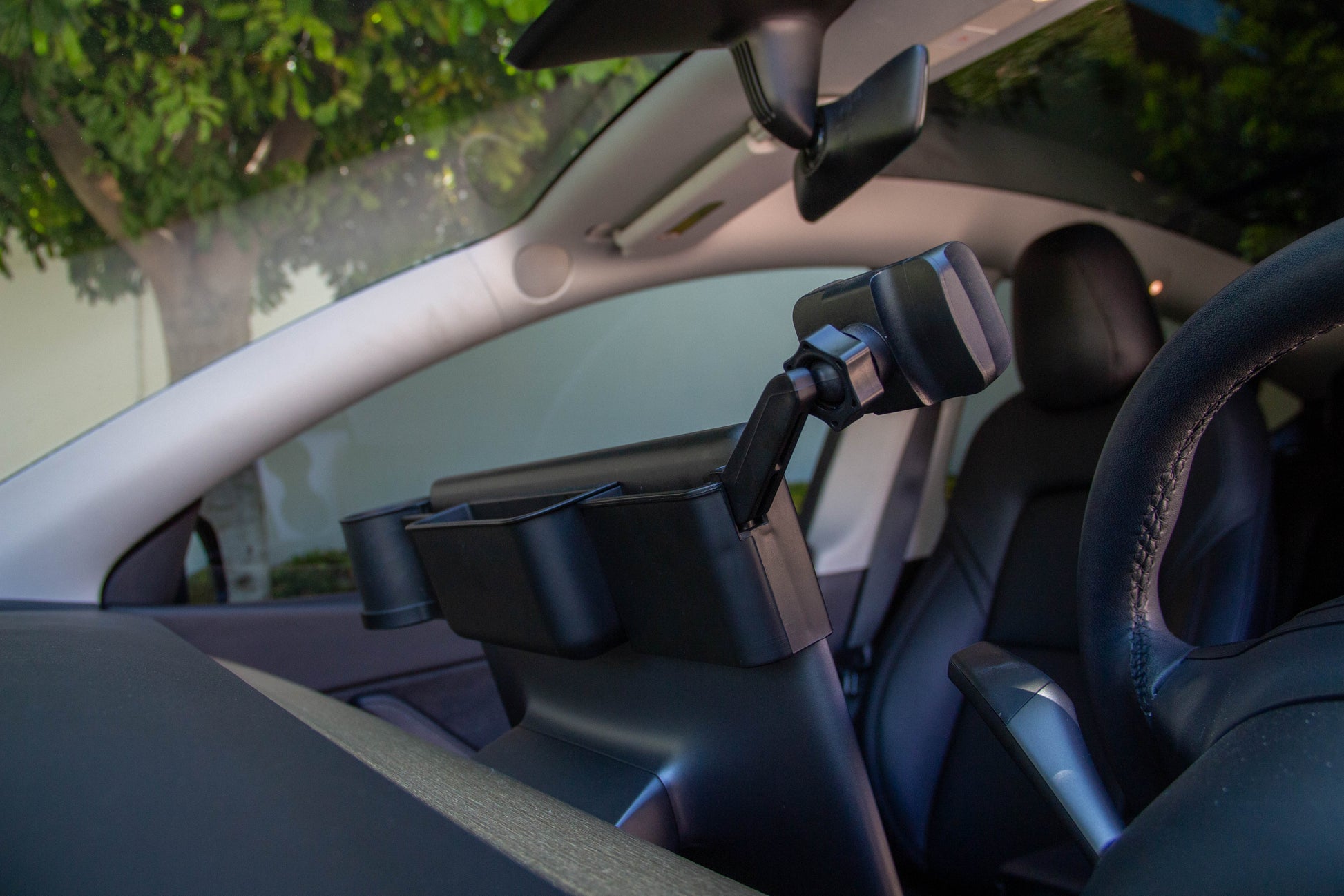 Tesla Model 3 & Y Monitor Phone Mount and Sunglasses Case – Secure Phone Holder and Cup Holder Accessory for a Convenient Driving Experience